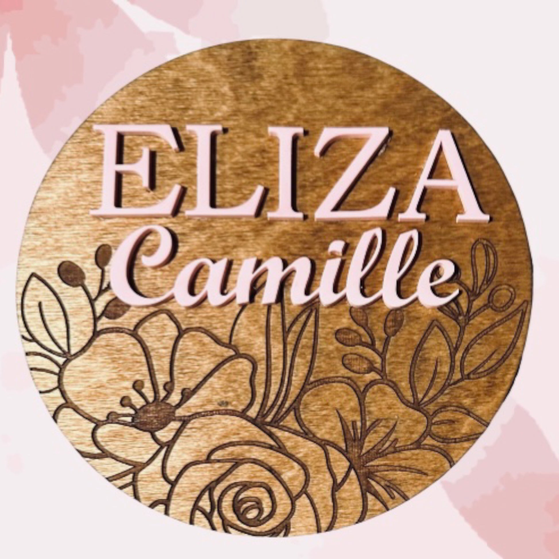 This wood round with acrylic is 6 inches in diameter. Each sign has an acrylic 3-D precision cut first and middle name in your choice of color. This beautiful announcement fits well in a hospital bag and has matching milestones.