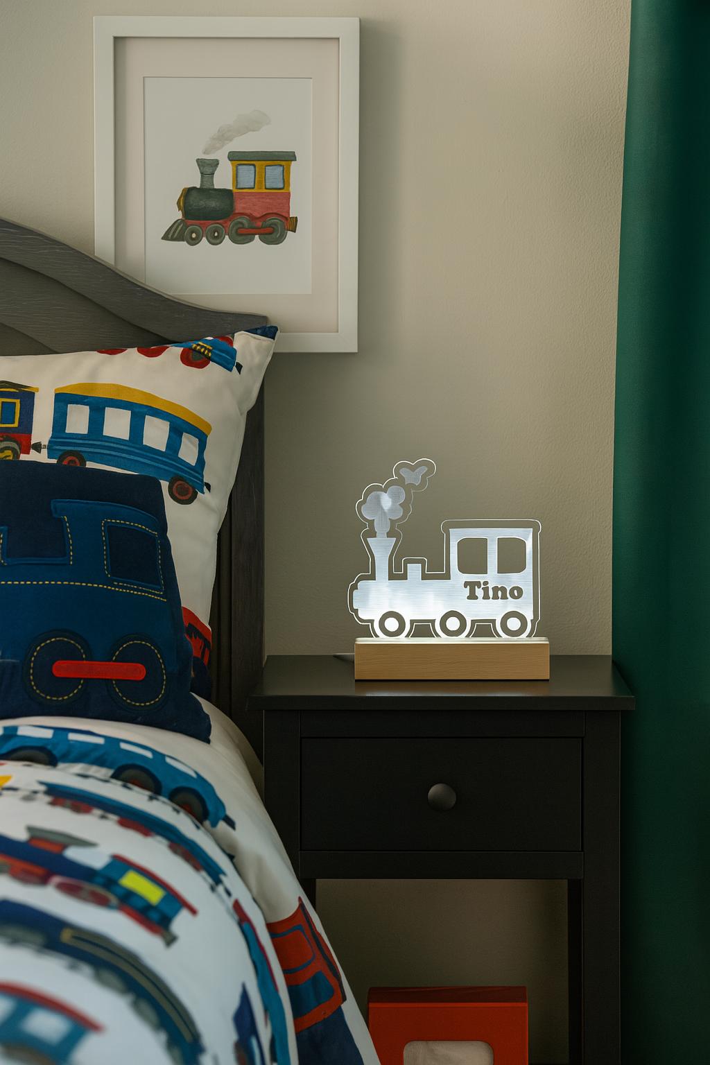 Bring a magical glow to your child's room with these Personalized LED nightlights.  Perfect for adding a touch of wonder to bedtime routines.  These charming nightlights are not only functional but also add a charming piece of personalized decor to any child's room.  Whether it's a whimsical rainbow nursery, a cozy twilight bedroom, or a playful tractor or dinosaur themed space, this softly glowing light becomes the perfect nighttime companion.