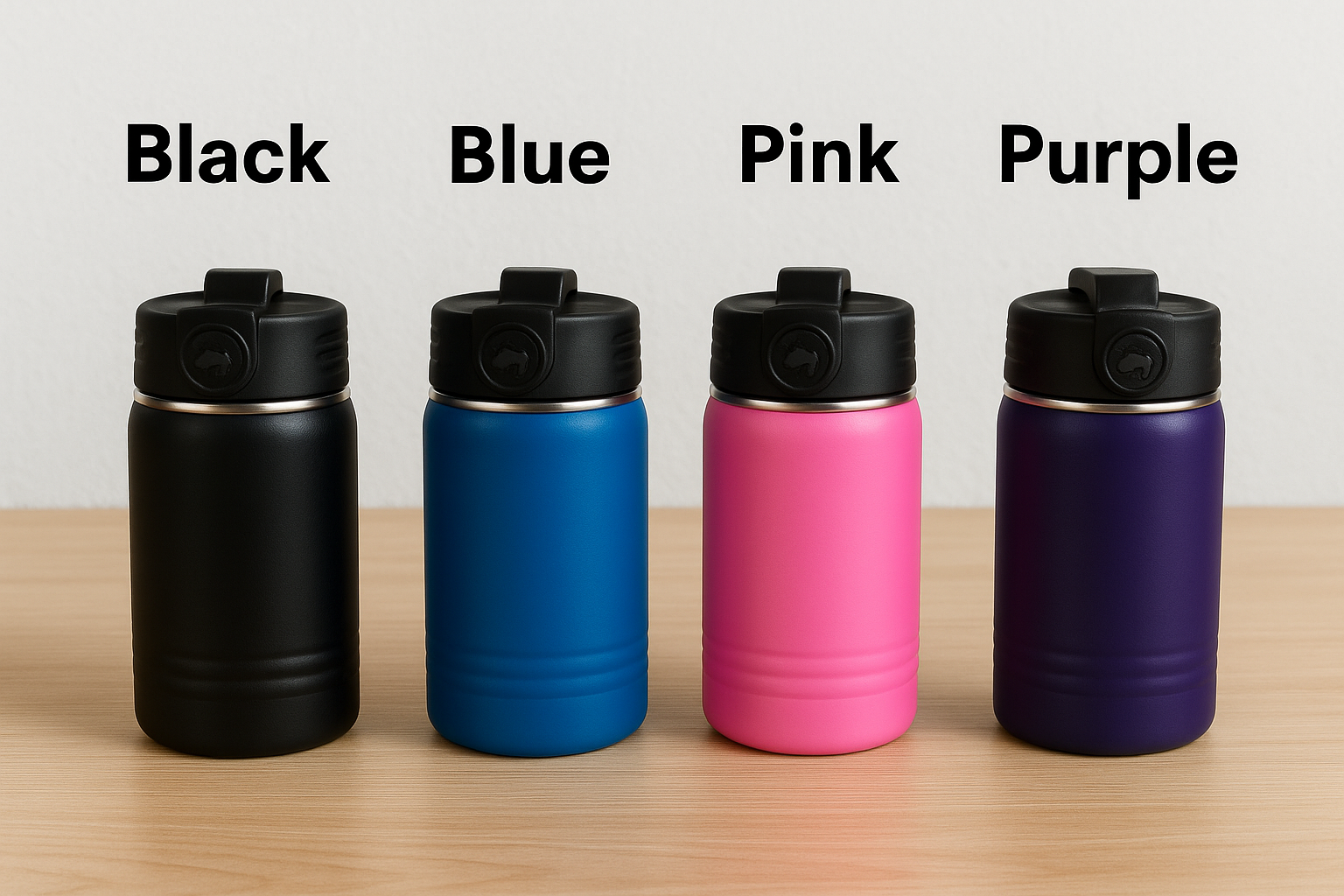 Available in black, royal blue, pink, and purple, and personalized with your child’s name – so their drink never gets mixed up again!